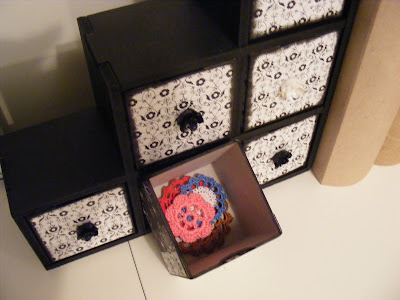 These little draws hold little things like crochet doilies, fancy buttons, stick pins, etc....